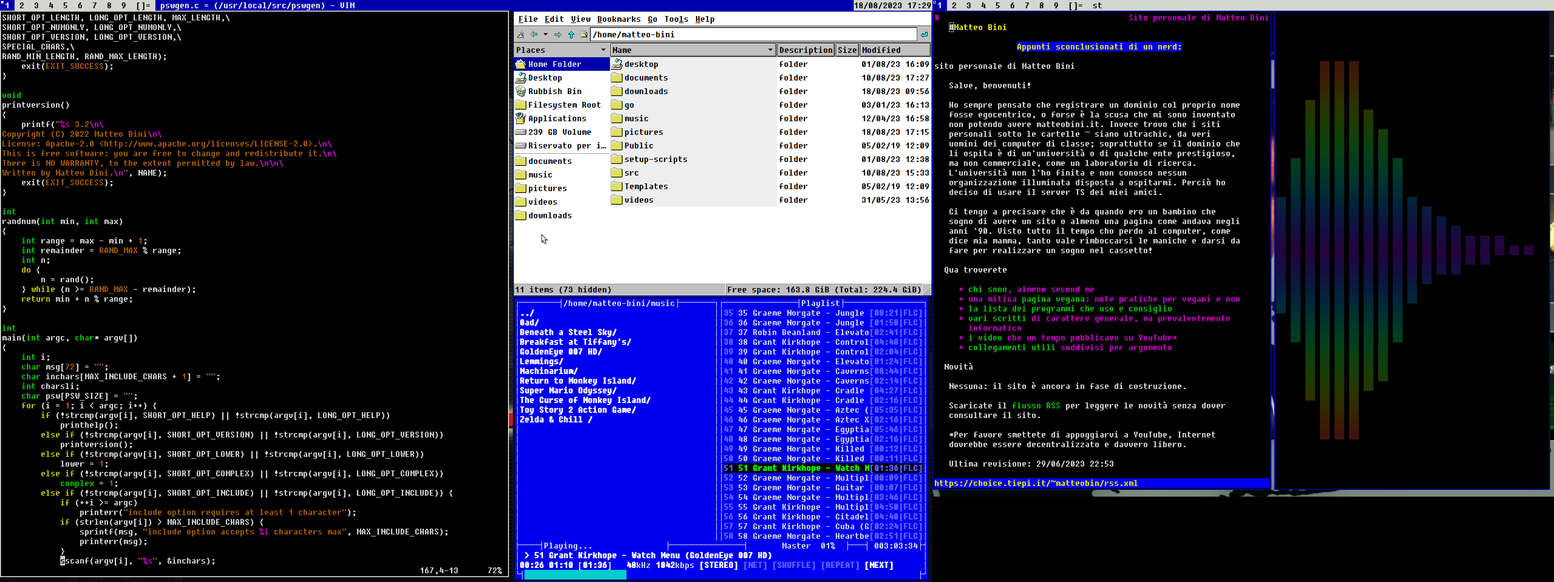 Con il progressivo impratichirmi di GNU/Linux e la scoperta della filosofia suckless [8], che ho trovato molto affine alla mio modo di usare i computer, sono migrato da un ambiente grafico completo a un gestore di finestre minimale; dwm appunto. Per mantenere i colori e il carattere di Windows 3.1 pure con dwm, scrissi una piccola patch [9].